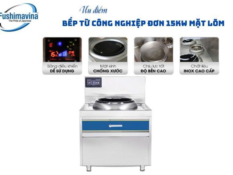 | Tên sản phẩm | Bếp Từ Công Nghiệp Đơn 15KW Mặt Lõm Fushimavina |