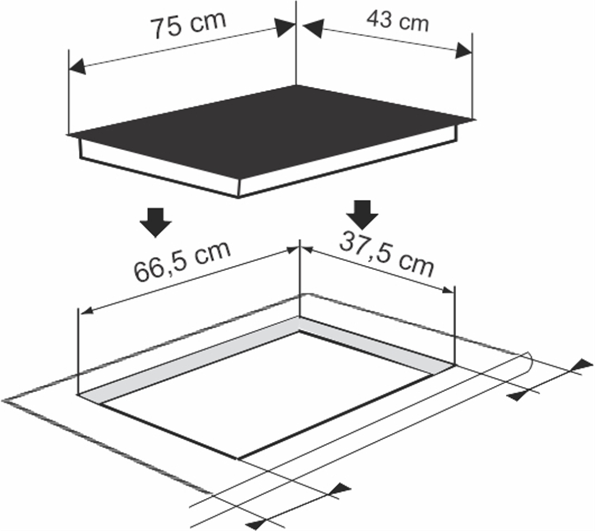Hình ảnh Kích thước sản phẩm và kích thước lắp đặt của bếp từ đôi Munchen GM2266SA