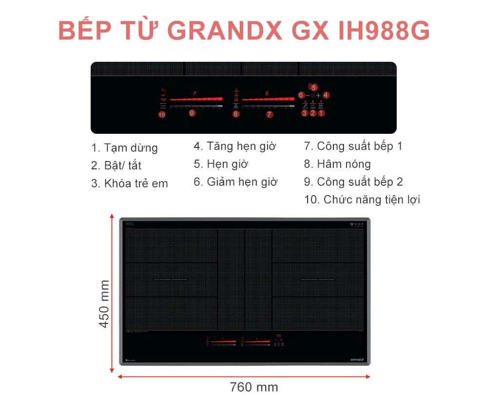 Thì Bếp từ GrandX 2 vùng nấu GX IH988G là lựa chọn rất đáng cân nhắc trong phân khúc cao cấp.