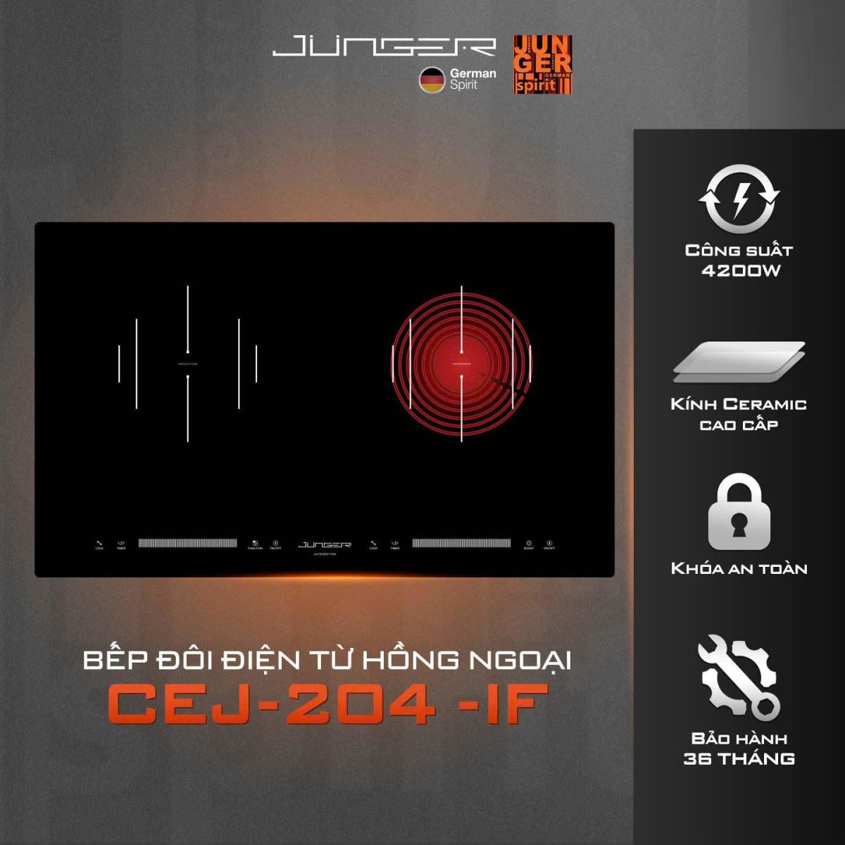 Junger CEJ‑204 IF là giải pháp hoàn hảo cho gia đình muốn sở hữu chiếc bếp đôi vừa sang trọng, vừa đa năng. Sự kết hợp giữa vùng từ và vùng hồng ngoại, cùng những tiện ích thông minh, mang đến cho bạn trải nghiệm nấu nướng tiện lợi, an toàn và tiết kiệm. Đây chính là khoản đầu tư đáng giá để nâng tầm gian bếp và chăm sóc sức khỏe cả nhà.