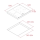 - Lắp âm gọn gàng: bếp có thiết kế lắp âm với khe hở đặt bếp chỉ 560 × 490 mm., tạo cảm giác bàn bếp liền mạch.