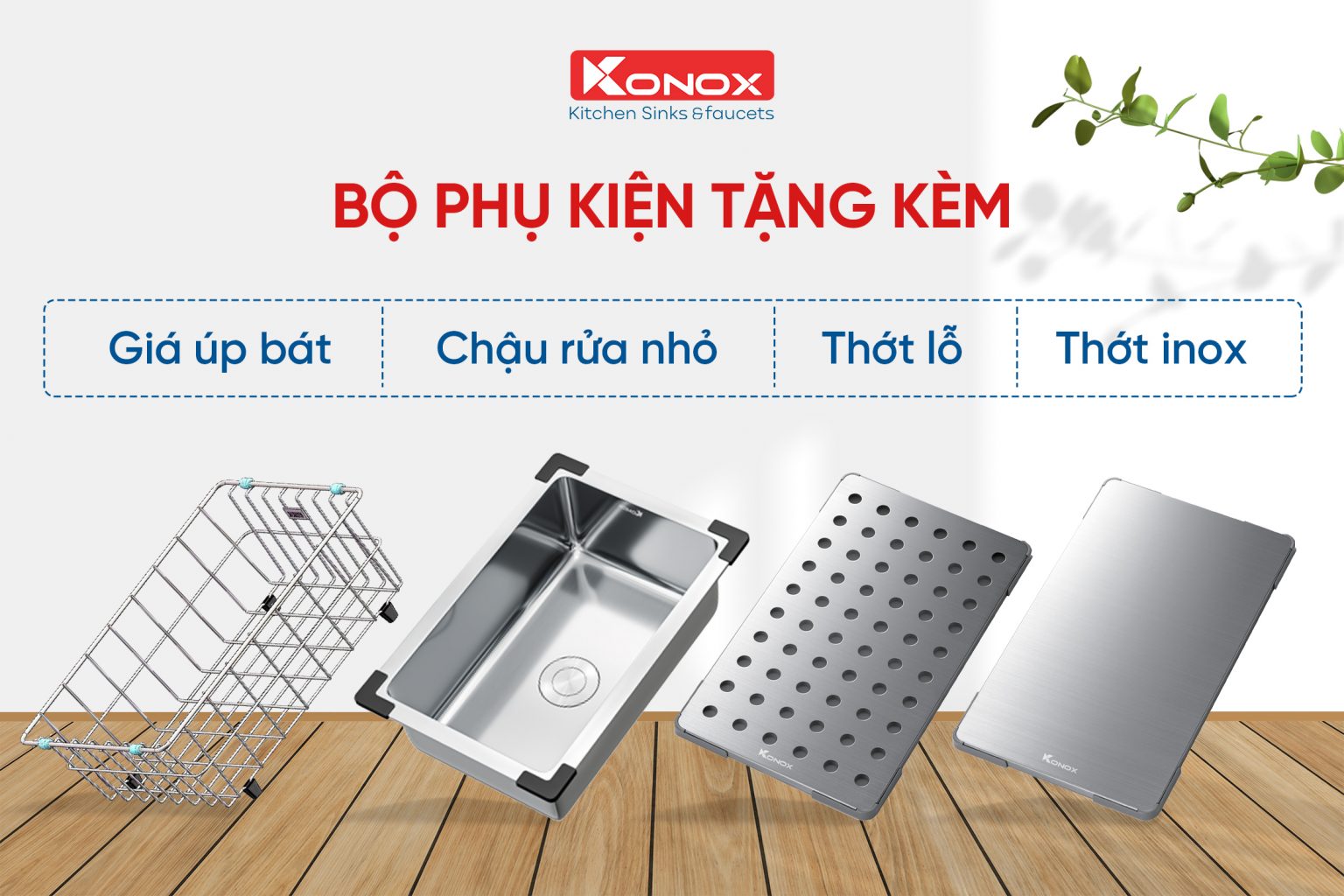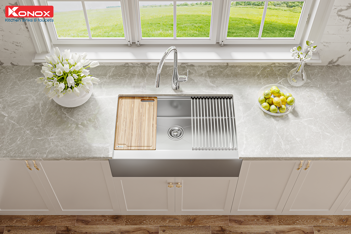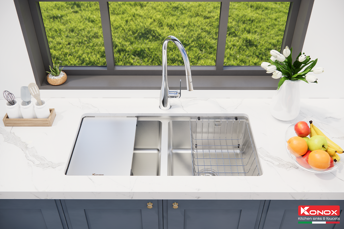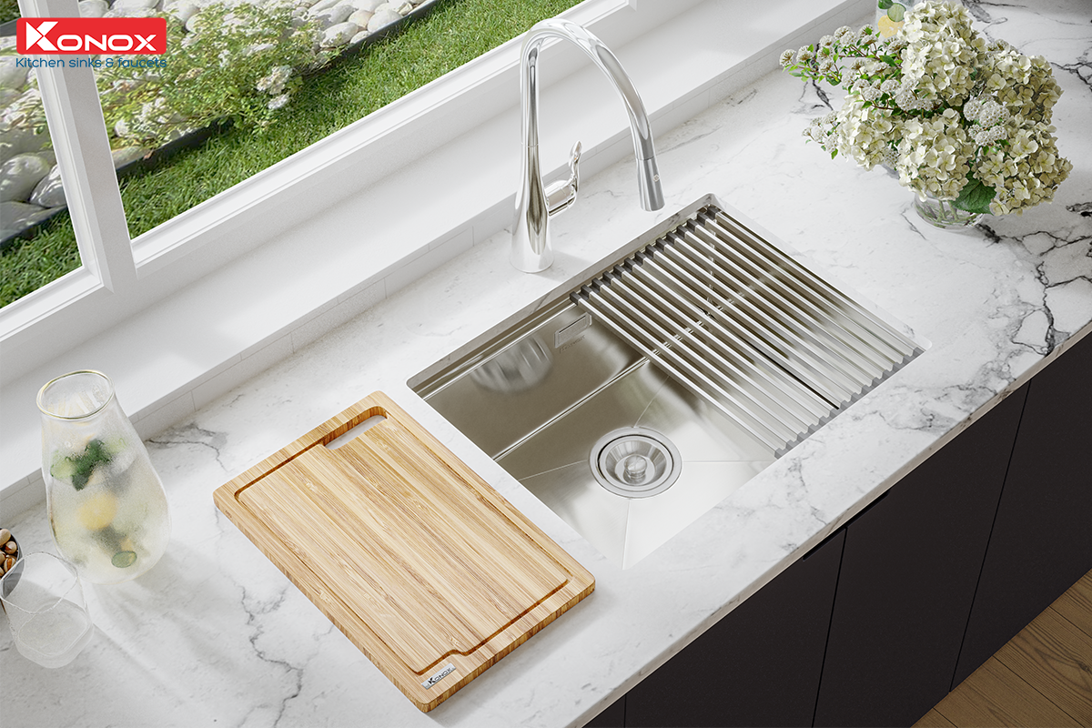 Konox không chỉ chú trọng đến tính năng của chậu rửa mà còn đặc biệt quan tâm đến trải nghiệm của người dùng thông qua các phụ kiện tích hợp như: