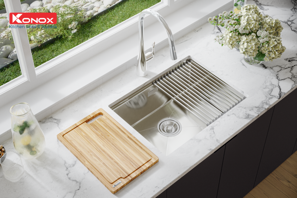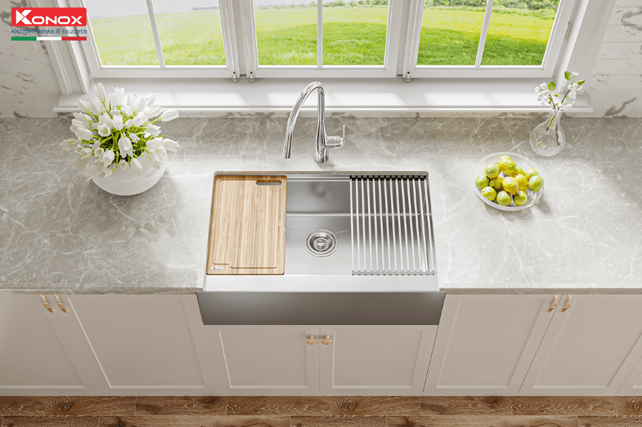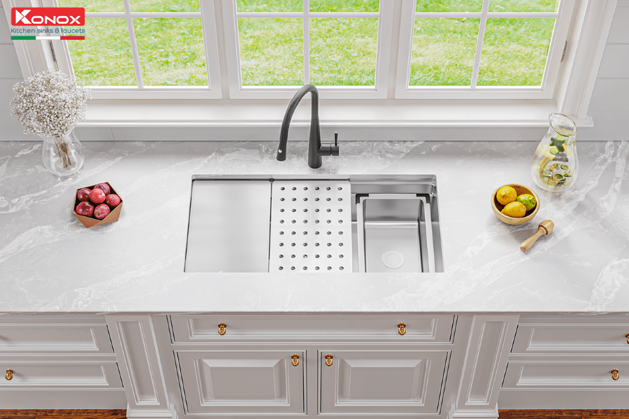 Lấy cảm hứng từ phong cách làm bếp hiện đại của người phương Tây, bộ sưu tập chậu rửa bát Workstation Sink của Konox không chỉ đơn thuần là một chiếc chậu rửa mà còn là một "trạm sơ chế" tiện lợi và thông minh cho không gian bếp của bạn.