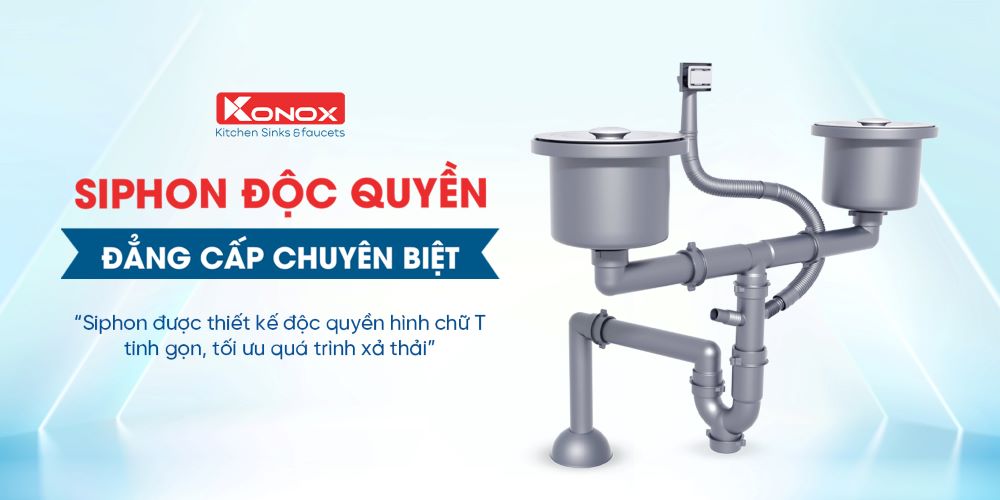 Konox không chỉ chú trọng đến thiết kế và tiện ích của chậu rửa mà còn quan tâm đến hệ thống thoát nước và vệ sinh. Sản phẩm đi kèm với hệ thống ống xả PVC cao cấp, thiết kế tinh gọn, tối ưu cho quá trình xả thải. Bát rác 3 lớp phủ Nano Bạc kháng khuẩn được thiết kế để ngăn mùi hiệu quả và bảo vệ sức khỏe cho người dùng.