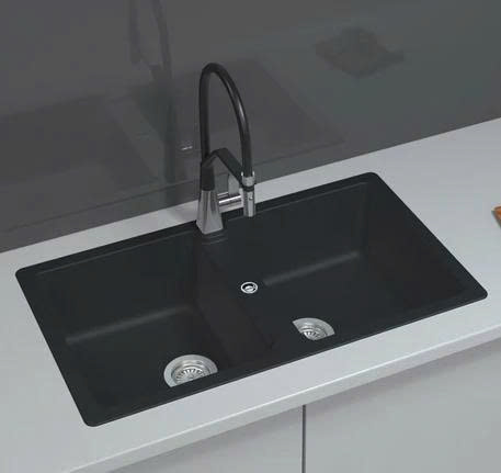 - Góc bo tròn mềm mại giúp nước thoát nhanh, hạn chế đọng cặn bẩn và dễ dàng vệ sinh. Bề mặt đá màu đen, xám hoặc kem tạo nên vẻ sang trọng, hiện đại và dễ phối với mặt đá bếp.