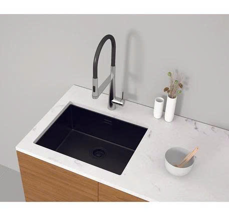 Chậu được mạ PVD với hai lựa chọn màu sắc phổ biến: Titan (tông sáng bạc) và Đen PVD sang trọng. Màu Titan tạo cảm giác sạch sẽ, phù hợp với bếp tông sáng, trong khi màu đen PVD mang đến vẻ hiện đại và cá tính. Lớp mạ PVD giúp màu sắc bền lâu và ít trầy xước hơn so với inox đánh bóng thông thường.