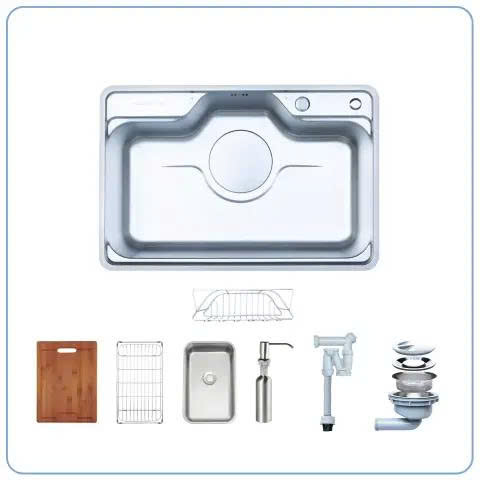 | Đặc điểm nổi bật | Lòng chậu sâu, bề mặt chống xước, gờ hạ bậc đa năng, bát rác lớn, dễ vệ sinh, tiện nghi cao |