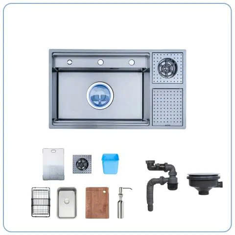 | Kiểu chậu | Chậu rửa bát 1 hố, tích hợp khu vực rửa cốc và phụ kiện trượt |
