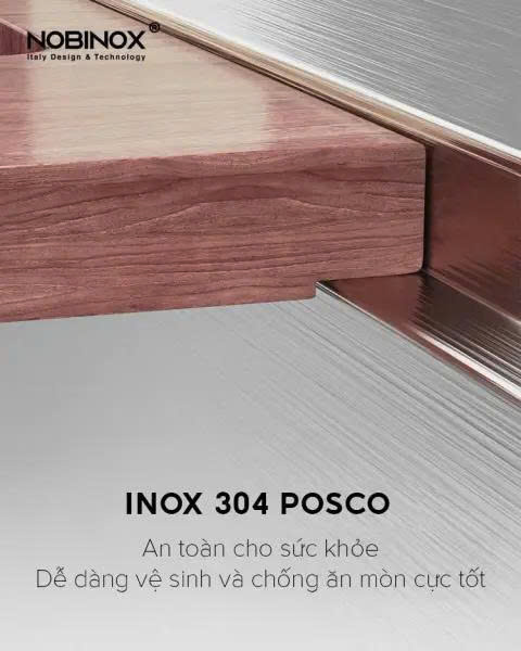 - Inox AISI 304 dày dặn: Chậu được sản xuất từ inox 304 theo tiêu chuẩn AISI 18/10 – vật liệu cao cấp dùng trong công nghiệp thực phẩm, không chứa chì và có khả năng chống oxi hóa vượt trội. Độ dày thân chậu 1,2 mm cùng mép chậu dày tới 3,0 mm tạo nên cấu trúc chắc chắn, bền bỉ theo thời gian.
