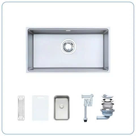 Rosa NN974DT không chỉ là một chiếc chậu rửa mà là một hệ sinh thái hoàn chỉnh. Bộ sản phẩm đi kèm thớt nhựa, khay phụ và rổ inox, cho phép bạn sơ chế, rửa và úp đồ ngay trên bồn rửa. Thớt nhựa vệ sinh để cắt gọt thực phẩm, khay dùng để ngâm hoặc rửa rau quả, còn rổ inox giúp úp bát đĩa hoặc đồ dùng sau khi rửa, giữ khu vực bếp luôn gọn gàng và khô thoáng. Nhờ bộ phụ kiện này, mọi công đoạn từ sơ chế đến dọn dẹp đều diễn ra trên một mặt phẳng, tiết kiệm thời gian và công sức cho người nội trợ.