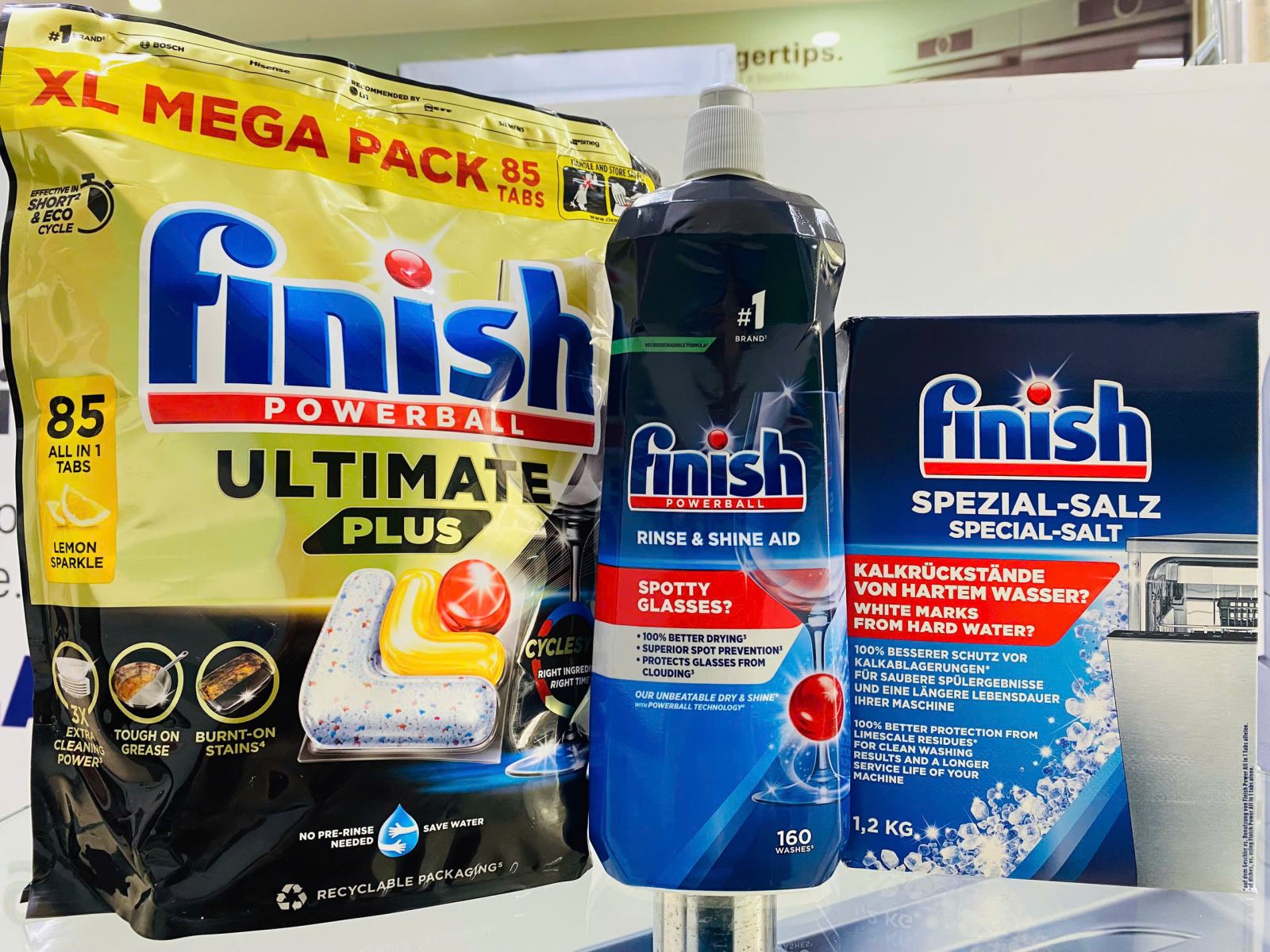 Nhiều gia đình muamáy rửa bát nhưng chỉ dùng riêng viên rửa, trong khi để máy vận hành hiệu quả và bát đĩa sau rửa đạt độ sạch đẹp tốt nhất, bộ sản phẩm nên có đủ viên rửa bát + muối rửa bát + nước làm bóng. Đó cũng là lý do Combo Finish Ultimate Plus 85 viên + muối 1.2kg + bóng 800ml trở thành lựa chọn rất thực tế cho người dùng muốn máy chạy ổn định, bát đĩa sạch sâu và hạn chế các vấn đề như vệt nước, cặn khoáng hay khô chưa đẹp.
