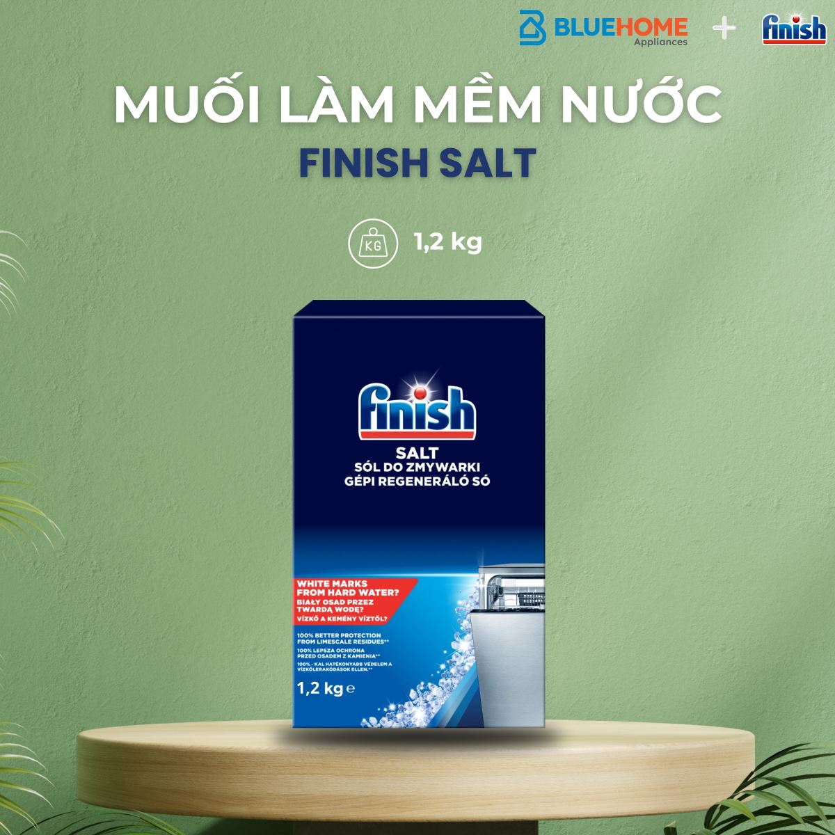 Muối rửa bát Finish 1.2kg hỗ trợ làm mềm nước và giảm đóng cặn trong máy.