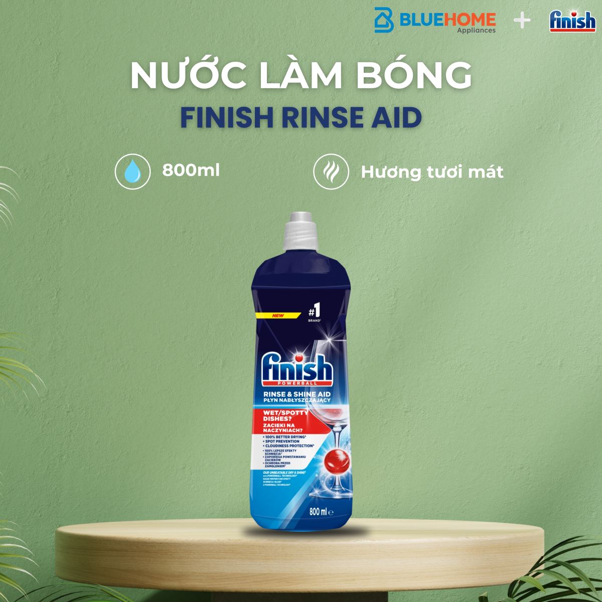 Nước làm bóng Finish 800ml giúp bát đĩa khô đẹp hơn, hạn chế vệt nước và tăng độ sáng bóng.