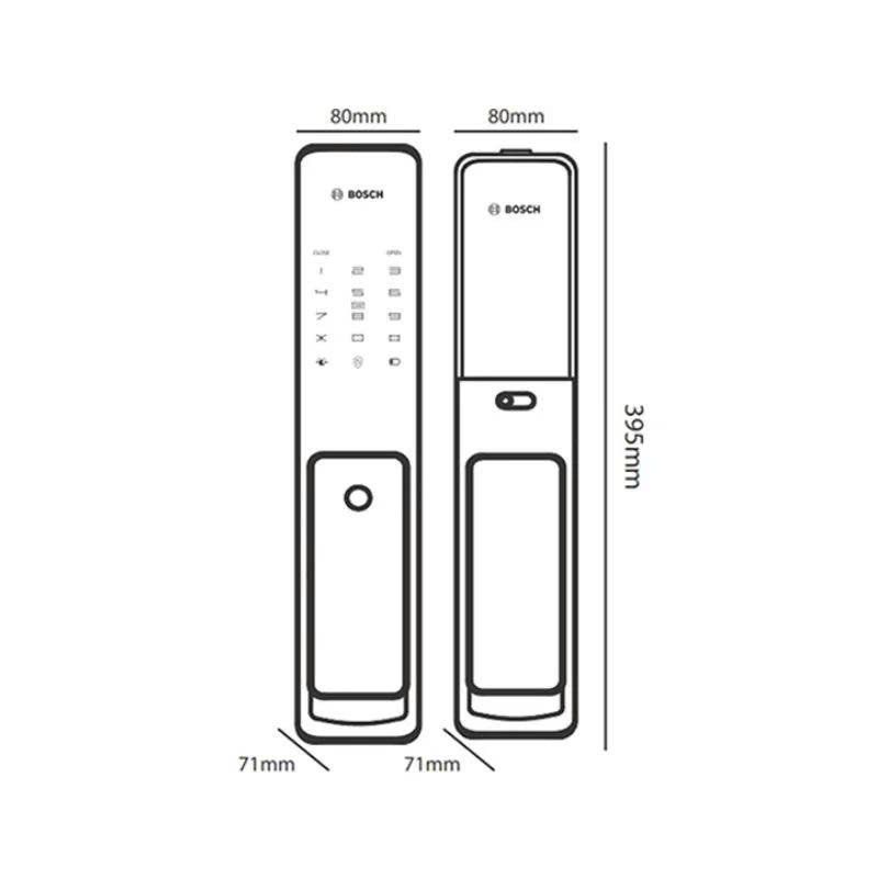 Khóa điện tử BOSCH FU750 EU thuộc dòng sản phẩm cao cấp của thương hiệu BOSCH. Mẫu khoá này sử dụng thiết kế đẩy – kéo (Push & Pull) liền khối, giúp thao tác đóng mở trở nên đơn giản và tiện lợi. Tay nắm được phủ màng IML chống trầy xước và chống bám bụi, đồng thời phần thân khoá làm từ hợp kim kẽm và thép không gỉ 304, chịu lực cao và chống ăn mòn. Màu sắc vàng đồng/ghi xám sang trọng phối hợp với đường nét bo tròn tinh tế, tạo điểm nhấn thẩm mỹ cho cánh cửa hiện đại.