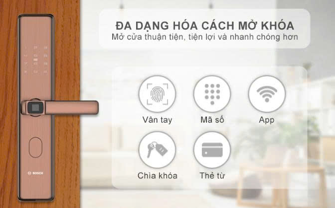 Vân tay bán dẫn, mật mã, thẻ từ, chìa cơ, app |