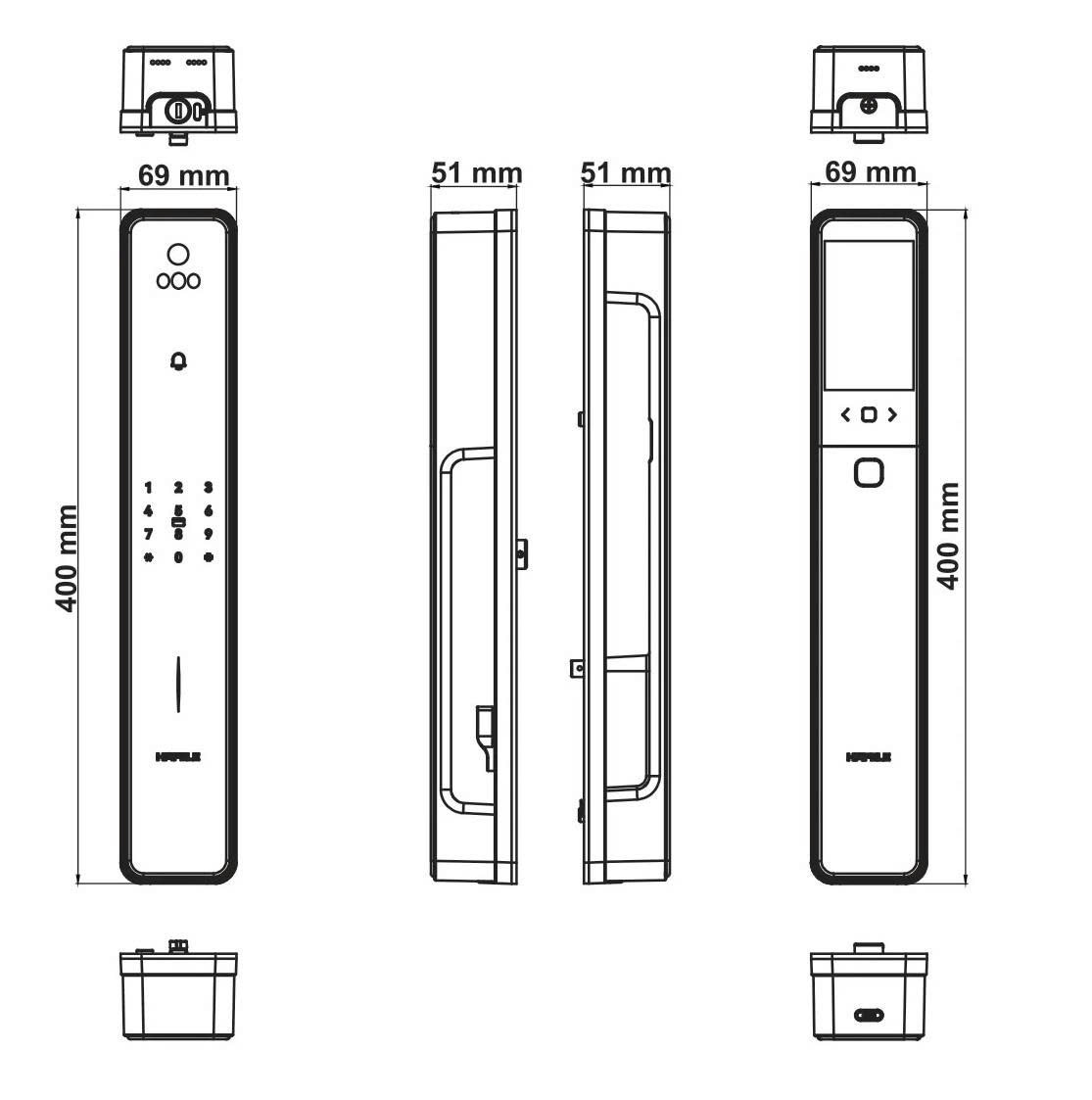 Khóa có kích thước bề mặt ngoài và trong đều 69 × 400 × 51 mm, phù hợp với hầu hết các mẫu cửa gỗ, cửa thép chống cháy hoặc cửa nhôm Xingfa. Độ dày cửa thích hợp từ 33 mm đến 90 mm và kích thước đố cửa 120 mm, cửa mở xoay truyền thống. Khoảng cách khe hở giữa cửa và khung tối thiểu 3 mm giúp lắp đặt chắc chắn. Nhà sản xuất kèm theo bộ ốc vít, trục khóa, 2 chìa cơ và thẻ từ nên quá trình thi công diễn ra nhanh chóng.