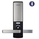 - Điện thoại thông minh (Bluetooth): Khi có kết nối Bluetooth, người dùng có thể mở khóa bằng ứng dụng trên smartphone. Khóa sẽ gửi thông báo đẩy, người dùng xác nhận qua ứng dụng rồi đẩy tay cầm để mở cửa. Chức năng Bluetooth có thể kích hoạt hoặc tắt bằng cách nhấn nút đăng ký phía trong.
