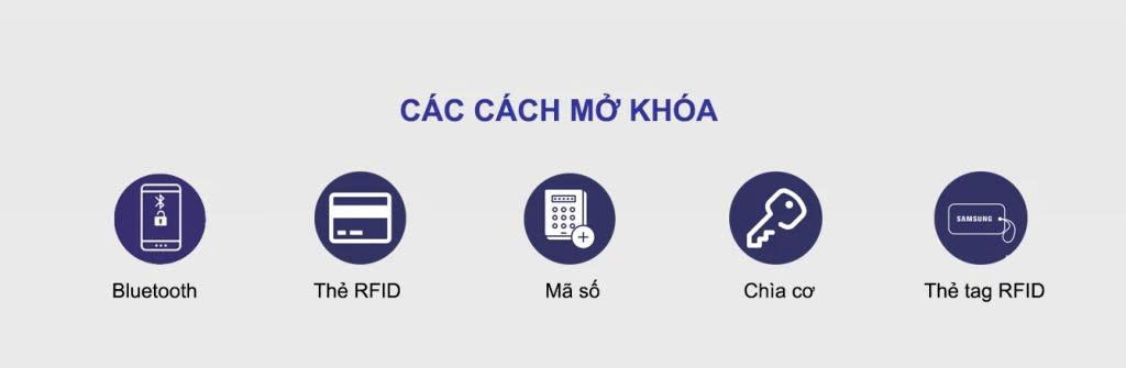 | Phương thức mở khóa | Mã số PIN, Thẻ từ (RFID), Smartphone qua Bluetooth (ứng dụng) |