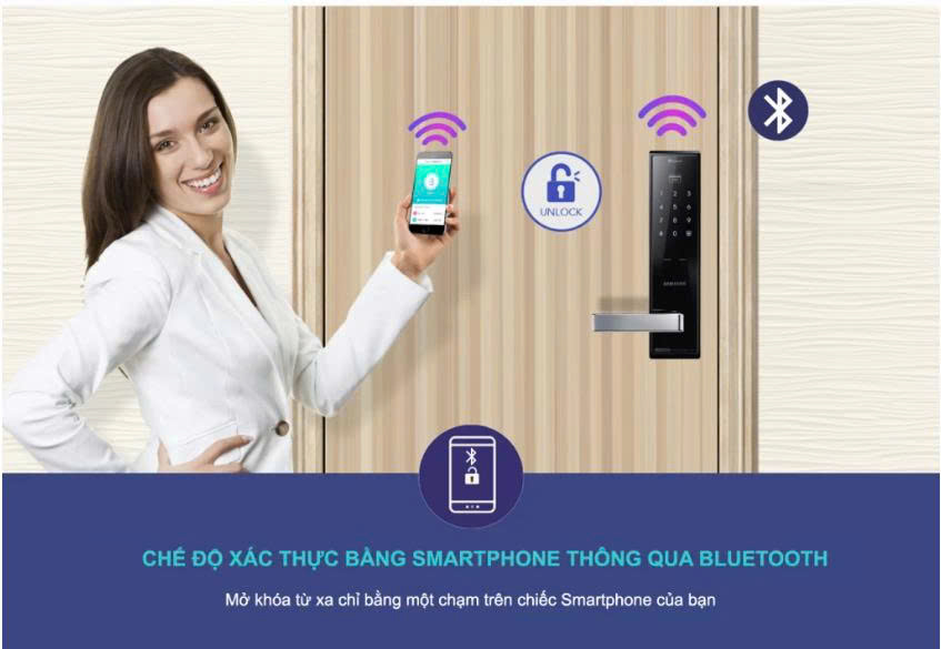 Mã số, thẻ từ, vân tay, chìa cơ, Bluetooth/app |