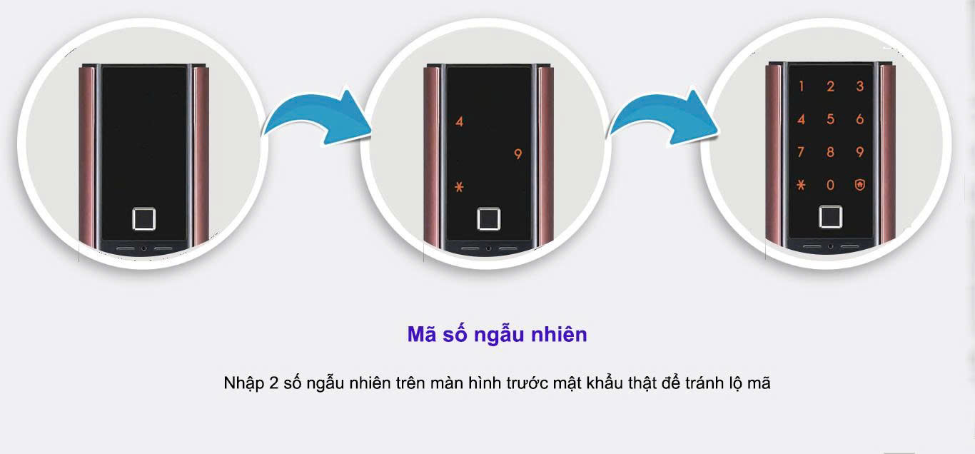 - Mã số ảo & cảnh báo sai mật khẩu: Tính năng mã số ảo giúp che giấu mật khẩu thật; nếu nhập sai mã quá nhiều lần, khóa sẽ tạm ngưng hoạt động và phát tín hiệu cảnh báo.