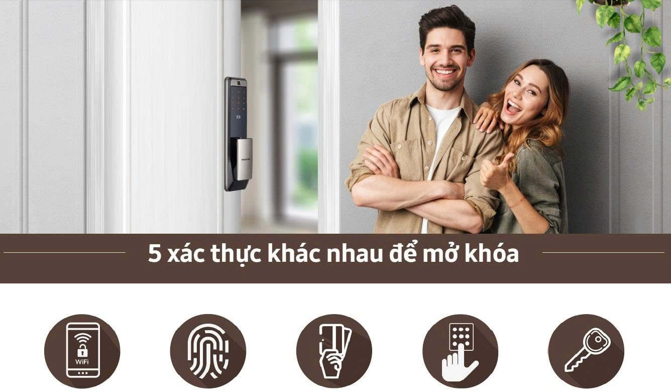 | Phương thức mở khóa | Vân tay • Mã PIN • Thẻ từ (RFID 13.56 MHz) • Ứng dụng di động (Wi-Fi) • Chìa cơ • NFC (điện thoại Samsung) |