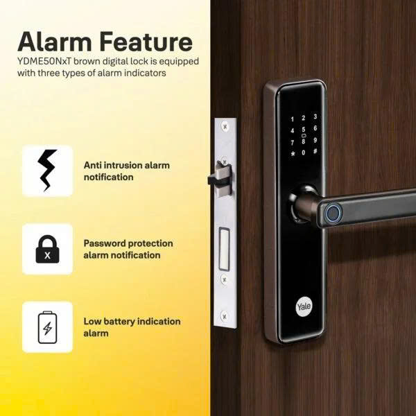 Ngoài ra, Yale YDME 50 NXT hỗ trợ chế độ xác thực kép (2FA) – kết hợp hai phương thức như vân tay và mã PIN hoặc vân tay và thẻ từ. Điều này gia tăng lớp bảo mật, phù hợp với người dùng yêu cầu an ninh cao.