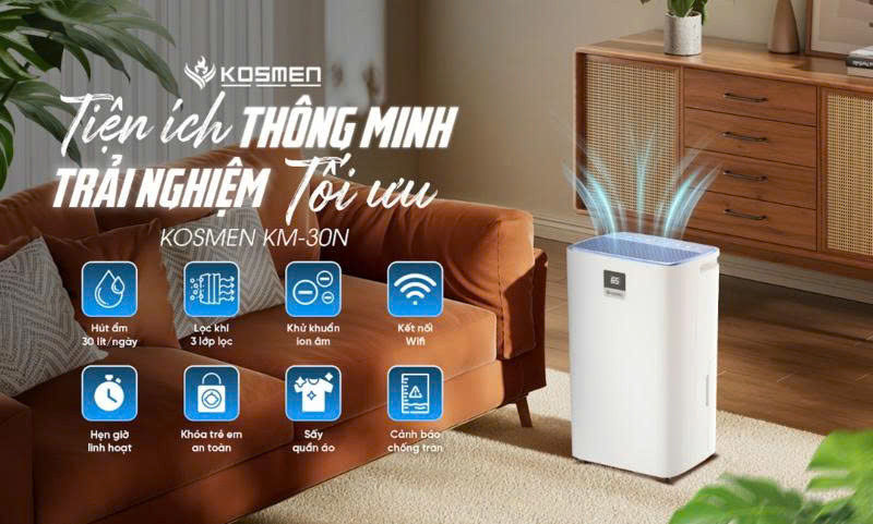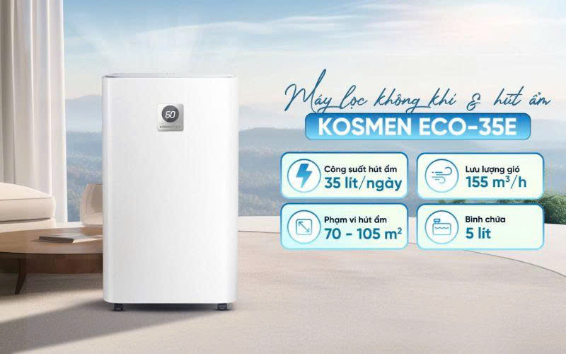 Máy Hút Ẩm Kèm Lọc Không Khí Kosmen ECO‑35E – Giải Pháp 2 Trong 1 Cho Môi Trường Sống Hiện Đại