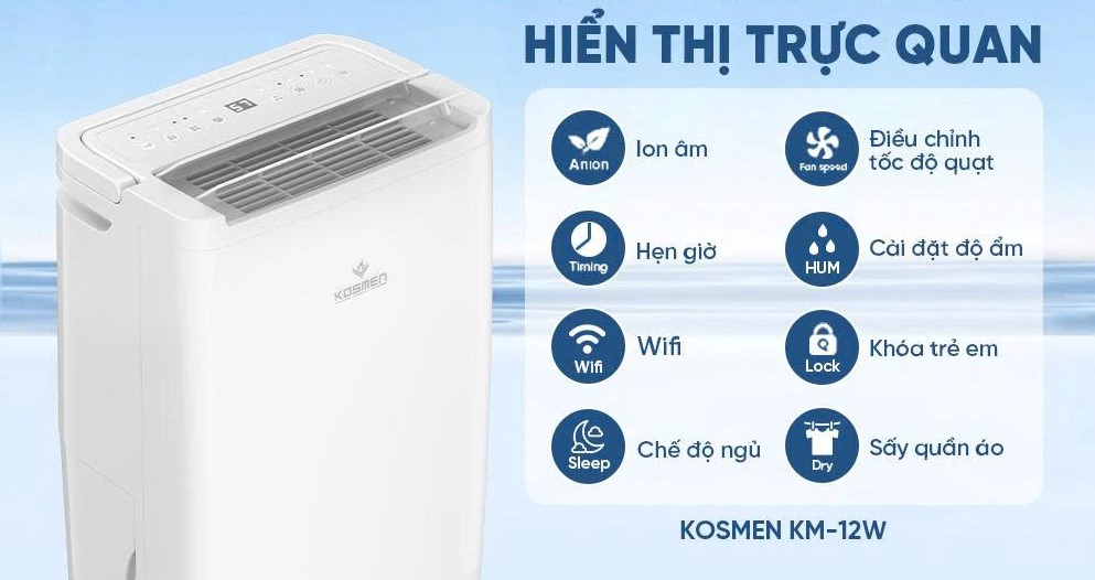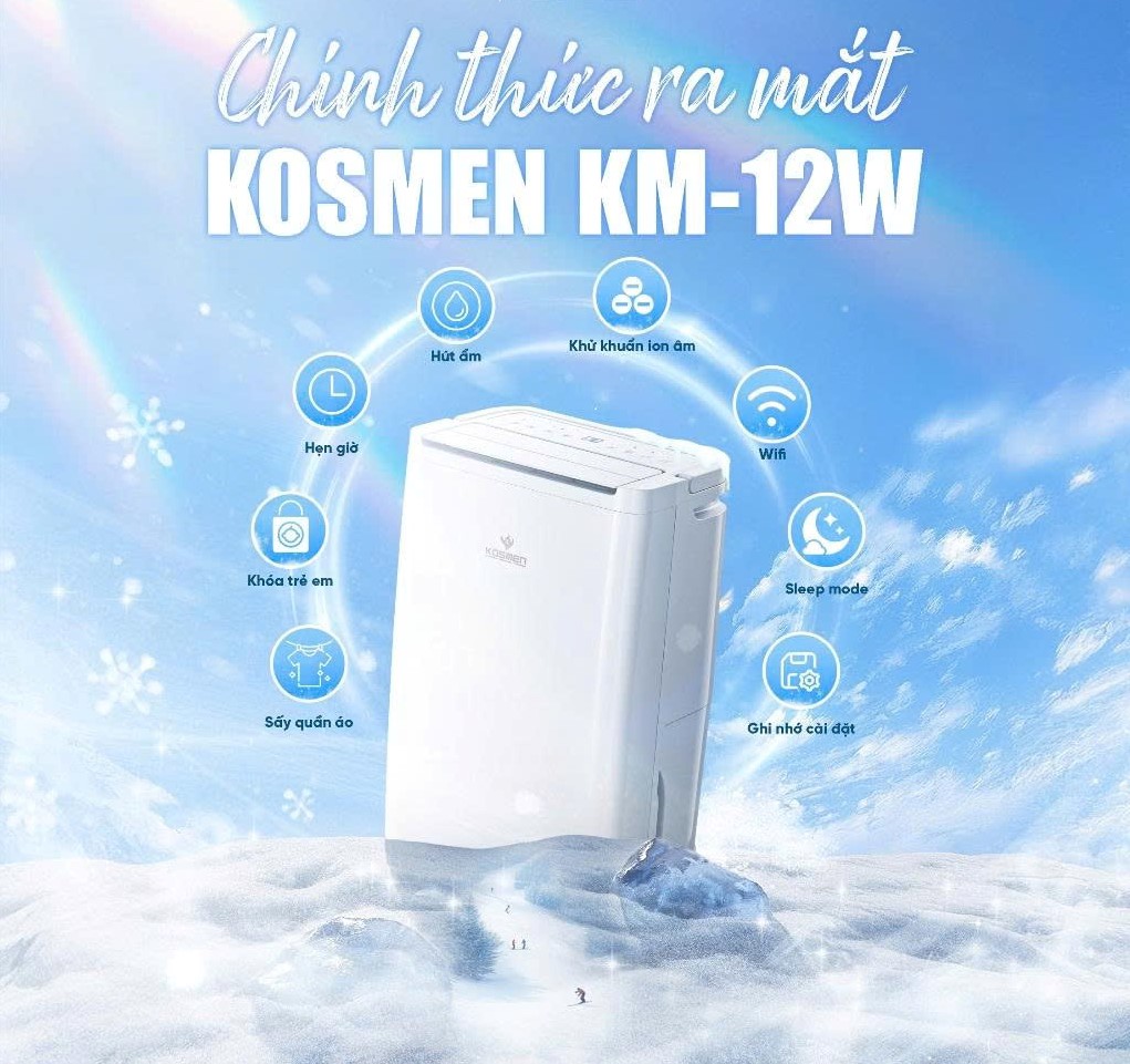 Máy hút ẩm Kosmen KM‑12W là lựa chọn đáng tin cậy cho gia đình và văn phòng nhỏ tại Việt Nam. Thiết bị không chỉ giúp điều hòa độ ẩm mà còn lọc sạch không khí, sấy quần áo và điều khiển thông minh qua Wi‑Fi. Với thiết kế hiện đại, vận hành êm ái và nhiều tính năng thân thiện, KM‑12W xứng đáng trở thành trợ lý đa năng cho mọi không gian sống, mang lại môi trường khô thoáng, sạch sẽ và tiện nghi quanh năm.