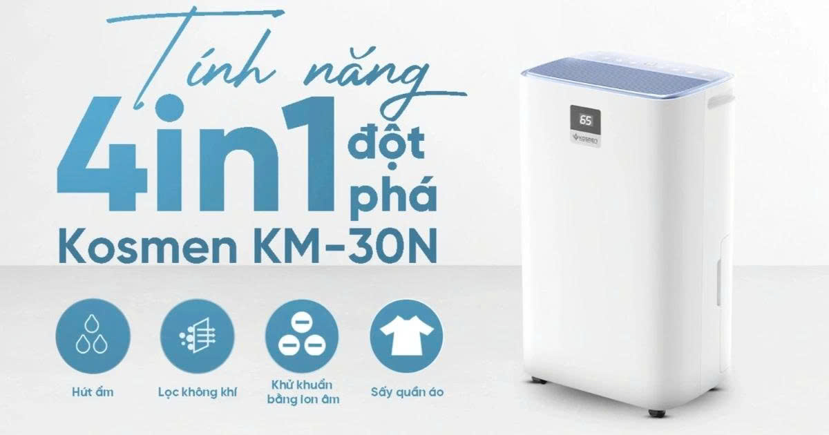 Máy Hút Ẩm & Lọc Không Khí Kosmen KM‑30N – Giải Pháp 4 in 1 Cho Không Gian Rộng