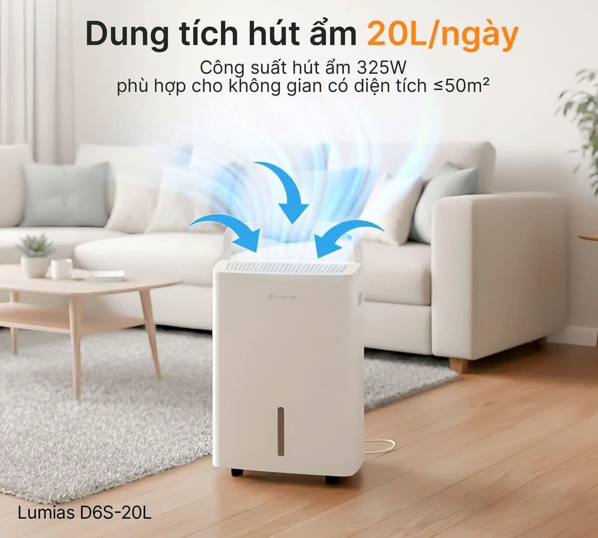 Lumias D6S‑20L là một chiếc máy hút ẩm đa năng mang lại không gian sống khô thoáng, sạch sẽ và yên tĩnh. Với công suất 20 lít/ngày, bình chứa nước lớn 4,9 lít và khả năng vận hành êm ái chỉ 37 dB(A), máy phù hợp với các không gian 30–50 m² như căn hộ, phòng khách, phòng ngủ hay văn phòng. Bộ lọc ion bạc khử khuẩn, bảng điều khiển cảm ứng và kết nối thông minh MiHome biến D6S‑20L thành thiết bị chăm sóc không khí toàn diện, đáp ứng nhu cầu sức khỏe và tiện nghi cho gia đình hiện đại. Nếu bạn cần một giải pháp hút ẩm hiệu quả, dễ sử dụng và bền bỉ, Lumias D6S‑20L xứng đáng được cân nhắc.