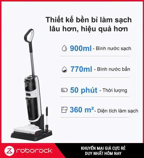 Với sự kết hợp giữa lực hút mạnh, công nghệ cảm biến thông minh và khả năng tự làm sạch, máy hút bụi lau nhà ướt và khô cầm tay Roborock Dyad Air là giải pháp tối ưu cho gia đình hiện đại. Thiết bị này giúp bạn xử lý cả vết bẩn khô lẫn chất lỏng trong tích tắc, tiết kiệm thời gian và công sức. Từ pin bền bỉ, dung tích bình lớn đến kết nối ứng dụng tiện lợi và cảnh báo bằng giọng nói, Dyad Air mang đến một trải nghiệm vệ sinh hoàn toàn mới. Nếu bạn đang tìm kiếm máy hút bụi lau nhà ướt và khô cầm tay Roborock Dyad Air chính hãng cho gia đình, đây chắc chắn là lựa chọn đáng đầu tư.