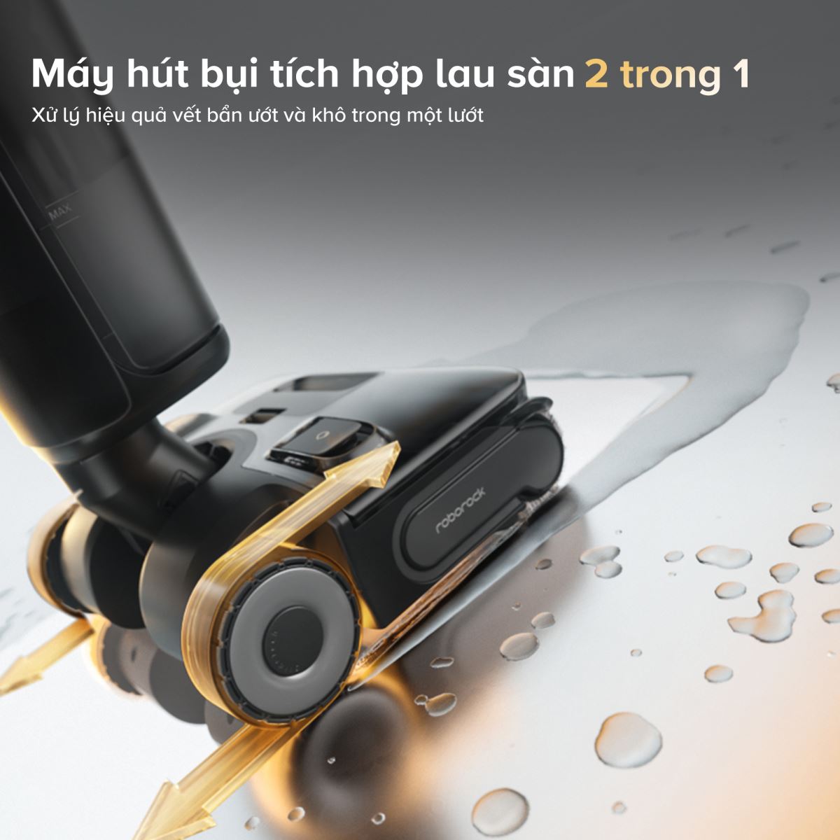 - Lau sàn và hút ướt/khô cùng lúc, xử lý vết bẩn ướt và khô trong một lần đi qua.