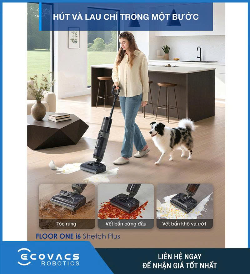 - Dọn sạch nhanh chóng cả nhà trong một bước – hút bụi và lau sàn cùng lúc giúp tiết kiệm thời gian.