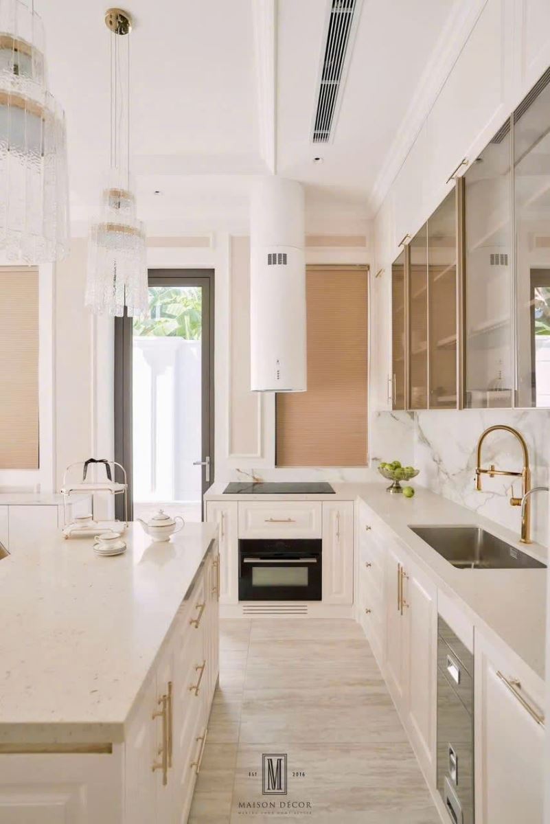- Đèn LED chiếu sáng hiện đại – ánh sáng ấm áp, tiết kiệm điện, giúp nấu ăn thoải mái và sang trọng hơn.