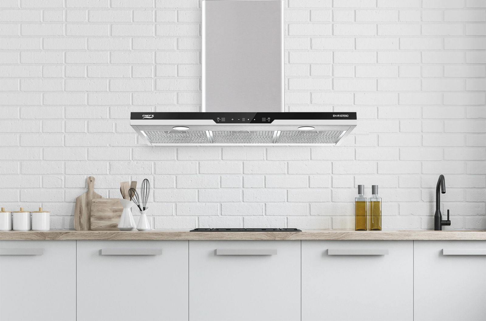 Máy hút mùi EH-R107E9D có thiết kế dạng chữ T nhỏ gọn, bề mặt phủ kính cường lực hiện đại, sang trọng dễ dàng vệ sinh