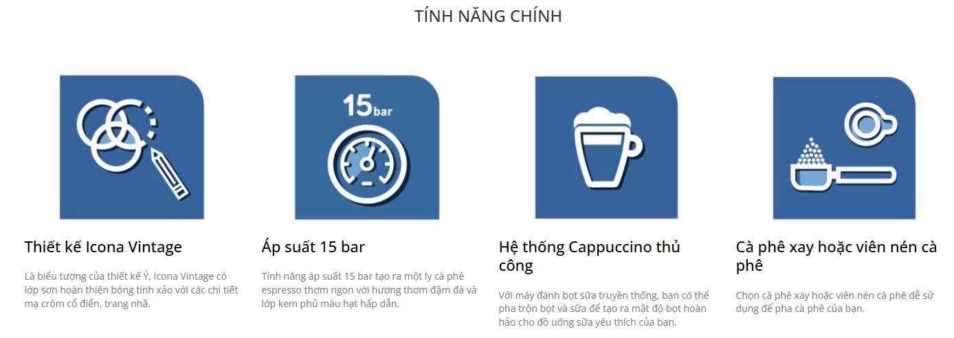 | Dòng sản phẩm | Máy pha Cafe thủ công Icona Vintage |