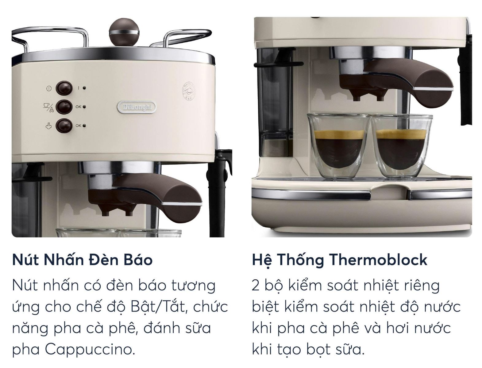 Delonghi Icona Vintage Beige ECOV311.BG là máy pha cà phê thủ công lý tưởng cho người yêu phong cách retro. Thiết kế độc đáo, khả năng chiết xuất espresso chuẩn Ý và hệ thống Cappuccino thủ công giúp bạn thỏa sức sáng tạo từ espresso đậm đà đến cappuccino bọt sữa mịn. Máy còn hỗ trợ cà phê xay và viên nén ESE, phù hợp cho cả gia đình lẫn văn phòng nhỏ. Nếu bạn tìm kiếm sự kết hợp giữa tính thẩm mỹ và trải nghiệm pha cà phê chuyên nghiệp, Icona Vintage Beige là lựa chọn đáng cân nhắc.