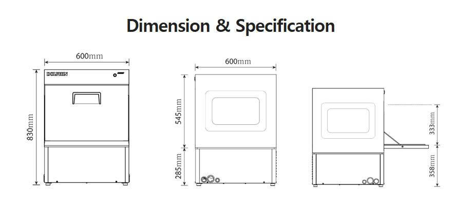 | Phân loại máy | Máy rửa ly/chén bát công nghiệp dạng undercounter (lắp dưới quầy) |