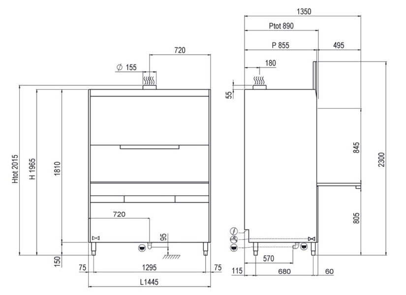 | Kích thước máy (Dài × Sâu × Cao) | 1445 × 855 × 2015 / 2290 (mm) |