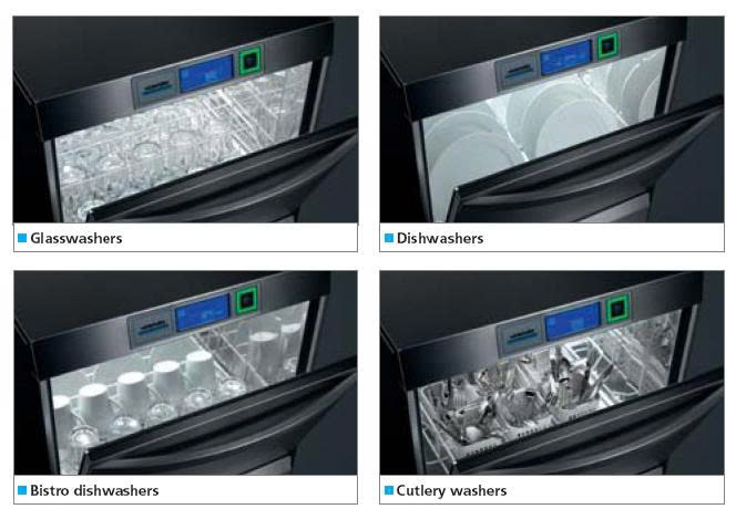 - Nhà hàng, khách sạn – rửa đồng thời bát đĩa và ly cốc trong giờ cao điểm; chế độ bistro cho phép rửa hỗn hợp ly cốc và đĩa trong cùng một chu trình.