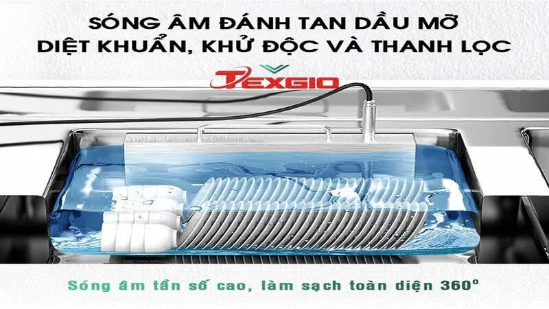 Điểm nổi bật nhất của Texgio TGU‑800SS là ứng dụng sóng siêu âm tần số 28 kHz để làm sạch. Khi hoạt động, máy tạo ra sóng âm cao tần lan truyền trong nước; các bọt khí vi mô (cavitation) sinh ra và vỡ ra liên tục, tạo ra lực va chạm mạnh mẽ trên bề mặt đồ dùng. Quá trình này giúp đánh bật dầu mỡ, cặn bẩn và vi khuẩn bám chặt ở những khe hẹp mà phương pháp rửa thông thường khó đạt tới. Theo trang so sánh Websosanh, công nghệ này không chỉ rửa chén bát mà còn phù hợp rửa hải sản, trái cây và rau củ giúp làm sạch nhanh và an toàn.