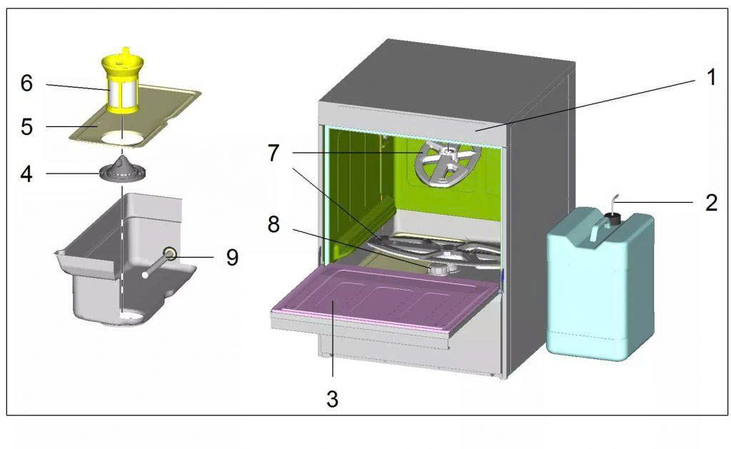 - Bể rửa dung tích thấp: bể chứa nước được tối ưu để giảm thể tích, giúp máy khởi động nhanh và tiết kiệm năng lượng. Điều này cho phép máy sẵn sàng làm việc chỉ sau vài phút khởi động.