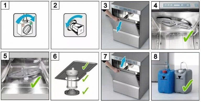 Việc rửa bằng máy đảm bảo ly cốc được tiệt khuẩn và không tồn dư hóa chất như rửa tay thông thường. Hệ thống lọc giảm sử dụng nước và hóa chất tẩy rửa, vừa tiết kiệm chi phí vừa thân thiện môi trường. Máy vận hành êm ái với độ ồn thấp (khoảng 59 dB) nên không ảnh hưởng tới không gian phục vụ.