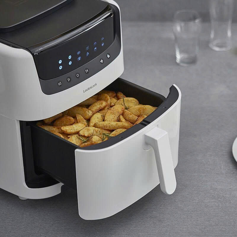 Nhờ thiết kế hiện đại và công nghệ luồng khí nóng kết hợp hơi nước, LocknLock EJF881 giúp thực phẩm chín đều, giữ được độ ẩm và hương vị tự nhiên, đồng thời giảm lượng dầu mỡ trong món ăn.