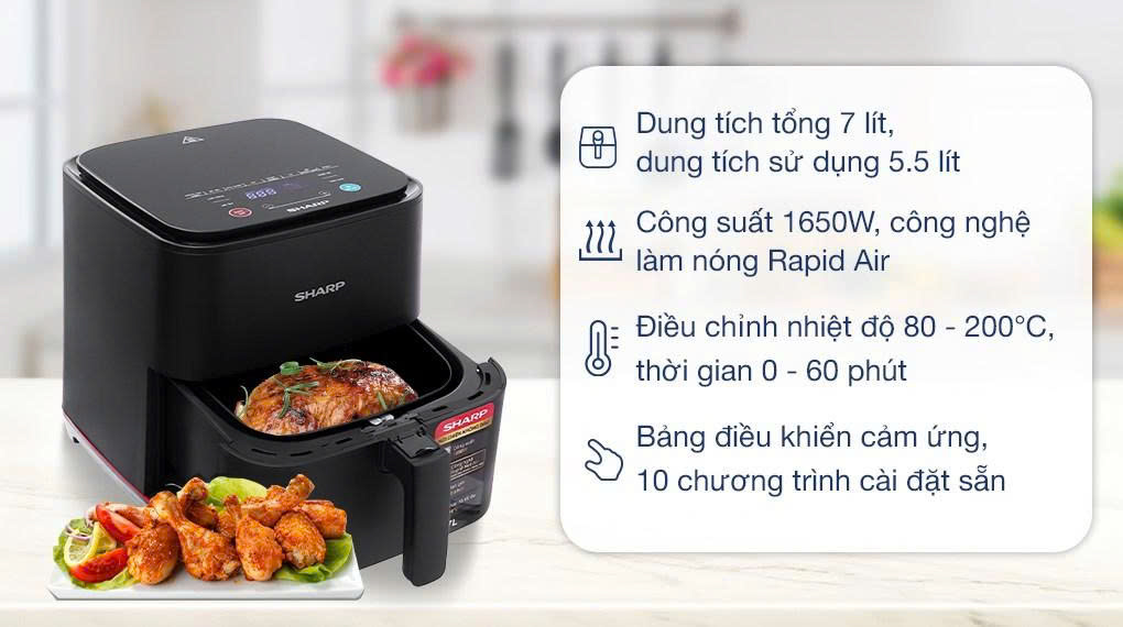 Nếu bạn đang tìm một chiếc nồi chiên không dầu dung tích lớn và hiệu suất cao, Sharp KF-AF70EV-BK là lựa chọn đáng cân nhắc.