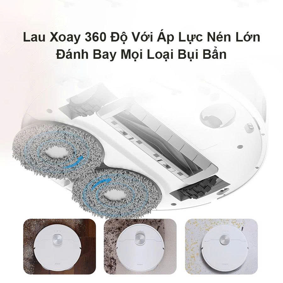 Điểm sáng giá nhất biến.Robot Hút Bụi Dreame L10 Prime thành một cỗ máy làm sạch xuất sắc chính là công nghệ lau sàn chuyên nghiệp. Thiết bị sử dụng hệ thống hai mâm lau bằng vi sợi tổng hợp, hoạt động theo cơ chế xoay 360 độ với tốc độ cực nhanh lên đến 180 vòng/phút.