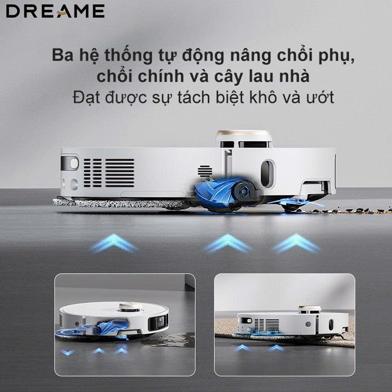 Tính năng nâng mâm lau 22 mm khi lên thảm giúp thảm không bị ướt và robot dễ dàng vượt qua các gờ cửa, thảm dày. Khi bạn chỉ muốn hút bụi, robot có thể tháo rời pad và để lại ở trạm sạc – điều mà ít robot làm được.