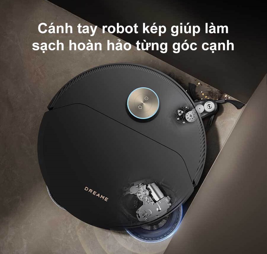 Robot hút bụi lau nhà Dreame thế hệ mới mang đến thiết kế vươn tay kép vô cùng linh hoạt. Công nghệ này là sự kết hợp giữa SideReach™ (vươn chổi quét cạnh) và MopExtend™ (vươn giẻ lau).