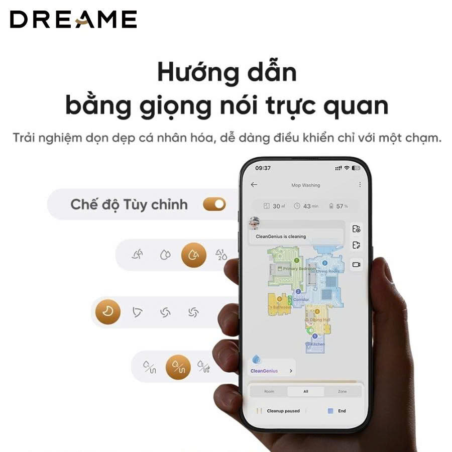 Dreame X60 Master hỗ trợ điều khiển qua ứng dụng Dreame, tương thích với nhiều hệ sinh thái nhà thông minh và trợ lý giọng nói. Người dùng có thể lên lịch, chọn chế độ làm sạch, khoanh vùng cấm, đặt khu vực thảm riêng hoặc theo dõi trạng thái máy theo thời gian thực.