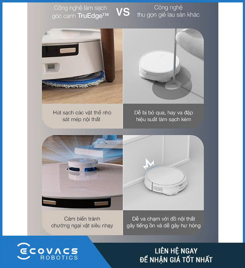 - Hiệu quả trong mọi không gian: từ nhà phố nhiều nội thất đến chung cư nhỏ, TruEdge™ giúp robot hoạt động linh hoạt và sạch đến từng chi tiết..